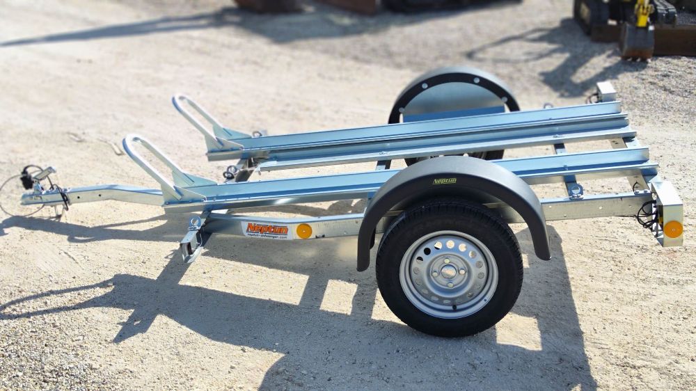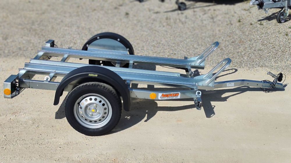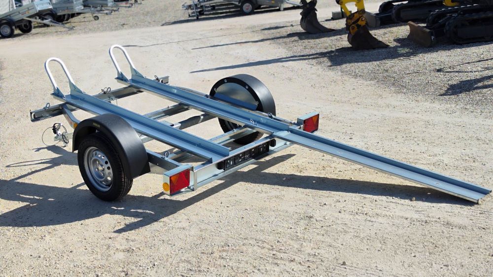 Tartozékok: 4 db rögzítő heveder, 2db motortartó sín, 2db kerékbefogó ív és 1db rámpa. Ívelt vonórúd az alacsonyabb padlómagasság érdekében, igény esetén a platót egy biztonsági csavar kivétele után le is lehet billenteni.